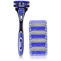 Style Name: Gift Set - Razor and Refill Blades Vine Customer Review of Free Product ( What's this? ) I've been using the disposable versions of this razor (Schick Hydro 5 Disposable Razors for Men Our Best Disposable Shaving Razor - 3 Count) for the last year or so and I'm very pleased with those. This cartridge version seems to deliver the same close, comfortable shave but with the addition of a more substantial ergonomic handle. It has a nice heft and is comfortable in the hand more so than the lightweight plastic-feeling disposables. I'm pretty sure that the business end--the actual cutter--is the same. Both have the "flip up" trimmer which I find very useful to even out sideburns and for the area right under my nose. I get about 30 shaves from each disposable, and so far I've got about 10 shaves on the first cartridge and it looks like it will last for the same amount of time. By the way, a trick I learned many years ago for preserving the sharpness of the razor's blade is to dry it after each use. I just draw the head sideways across my towel after I've rinsed it. Corrosion and rust are the enemies of the blade and drying it helps to extend its life. Once you own the handle, you'll buy just the cartridges which, at their current price of $11.50 for 4, will cost you almost the same 3 bucks apiece as the disposables referenced above! Since you're getting 5 cartridges here, it means that the handle costs you about $10 (Based on the current Gift Set price of $26.50). If you feel that Schick should give you the handle for free, then go with the disposables--you'll get the same excellent shave. But if you like the heftier feel of the permanent handle and don't mind paying for it just once, then this Starter Set is a good option. Comment Was this review helpful to you? Yes No Sending feedback...
